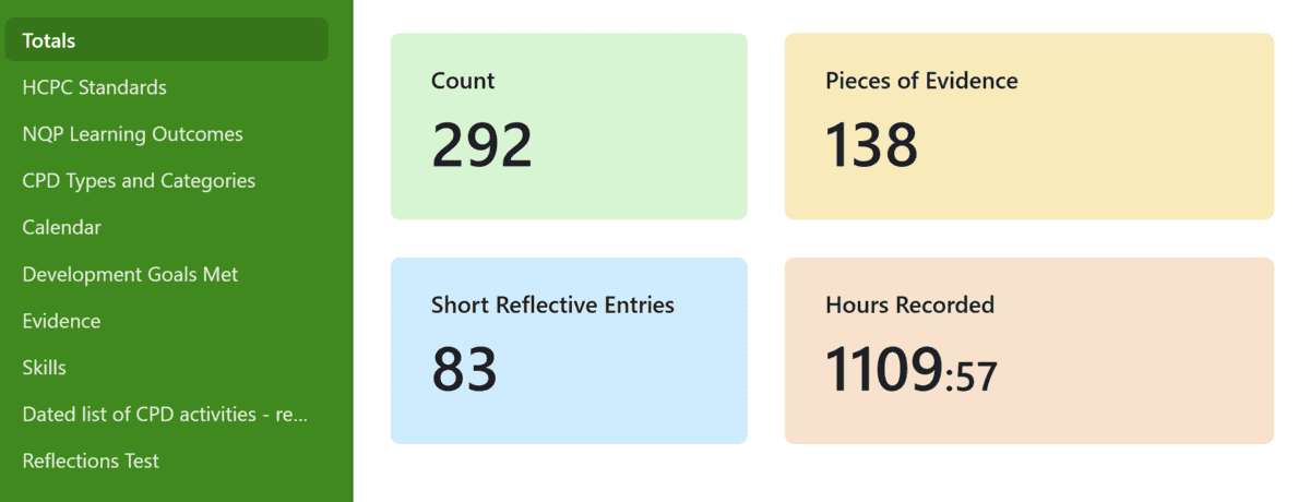 - values being able to store everything – certificates, reflections, skills logs, feedback, and your CPD activities (because after all, these are all CPD activities!) in one place.